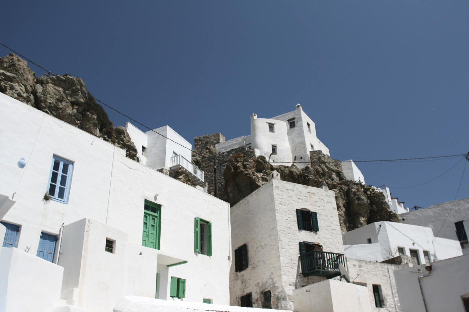 Situated in the sun bleached Hora, this house is literally carved into the rock with the exposed stone and structure...